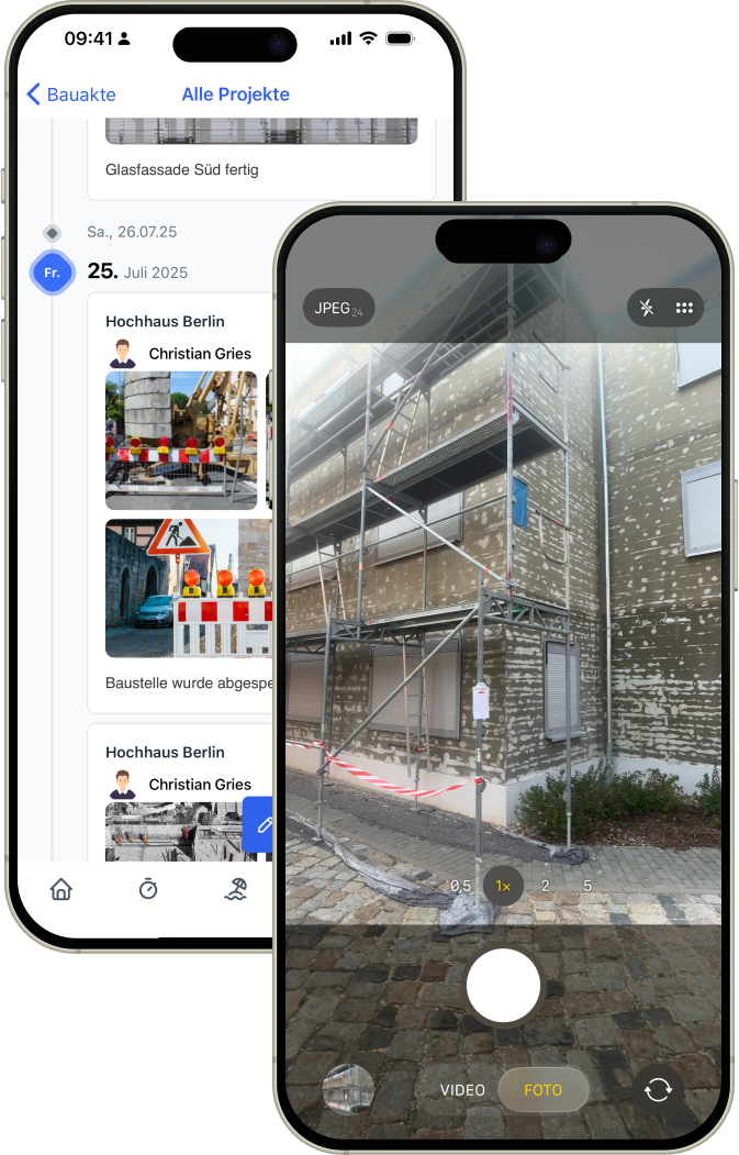 👉 Erfassen Sie den Baufortschritt mit Fotos und Notizen direkt über die App. Jede Eingabe wird automatisch mit Zeitstempel und Projektzuordnung versehen. Ideal für Bautagebücher und Mängelmanagement.