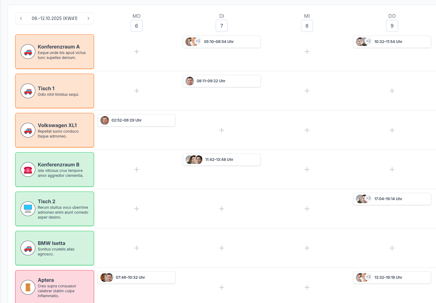 Legen Sie beliebige Ressourcenn an - von Konferenzräumen über Fahrzeuge bis hin zu Technik und Material.
