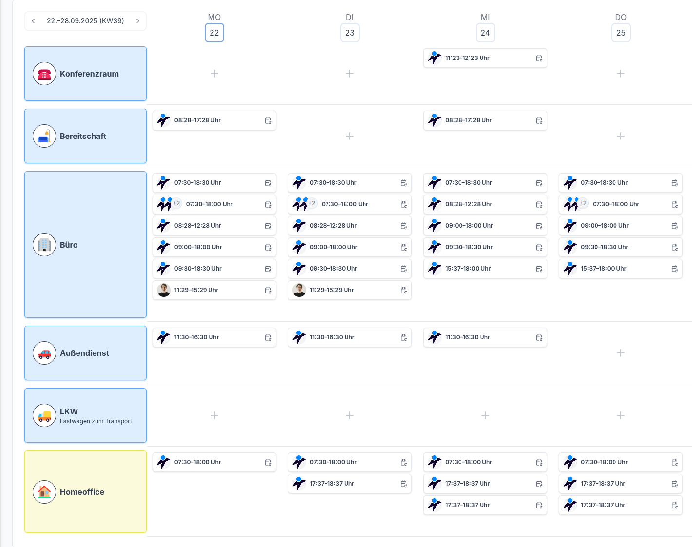 Dank klarer Zeitfenster und Übersicht erkennen Sie sofort freie Ressourcen und geplante Einsätze.